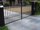Le portail est équipé de charnières déportées articulées réglées pour absorber la pente montant vers la propriété.